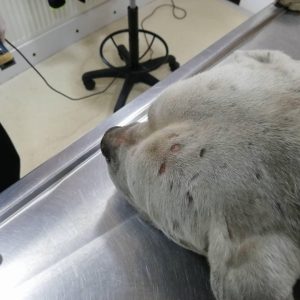 İlk etapta yoğun enfeksiyon, ateş ve öksürük gözlenen köpeğimizin tedavisine başlandı. Yıkandıktan hemen sonra bile bakışları düzelen köpeğimizin iyileştiği zaman nasıl mutlu olacağını hep birlikte bekleyelim, görelim 🙂