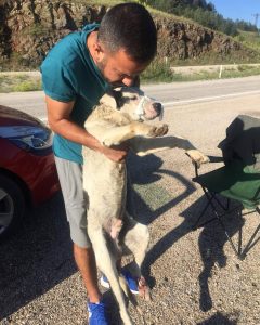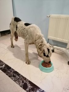 Yol kenarında üyemizin arkadaşları tarafından bulunan köpeğimizi Kızılcahamam-Bolu yolundan aldık ve kliniğe getirdik. Sol arka bacağında kemikleri çıplak gözle görülen köpeğimizin vücudunun çeşitli yerlerinde de dövüş, ısırılma izleri görüldü. Dövüşlerde kullanıldığını düşündüğümüz köpeğimizde ayrıca, zayıflık, muhtemel enfeksiyon, susuzluk, keneler, penisinde problem de görüldü.