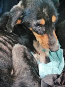 Besleme dönüşü su kenarında uyurken bulduğumuz can. Hem uyuz hem de Katarakt nedeniyle çok yüksek oranda görme engelli. Tedavi altına alındı.